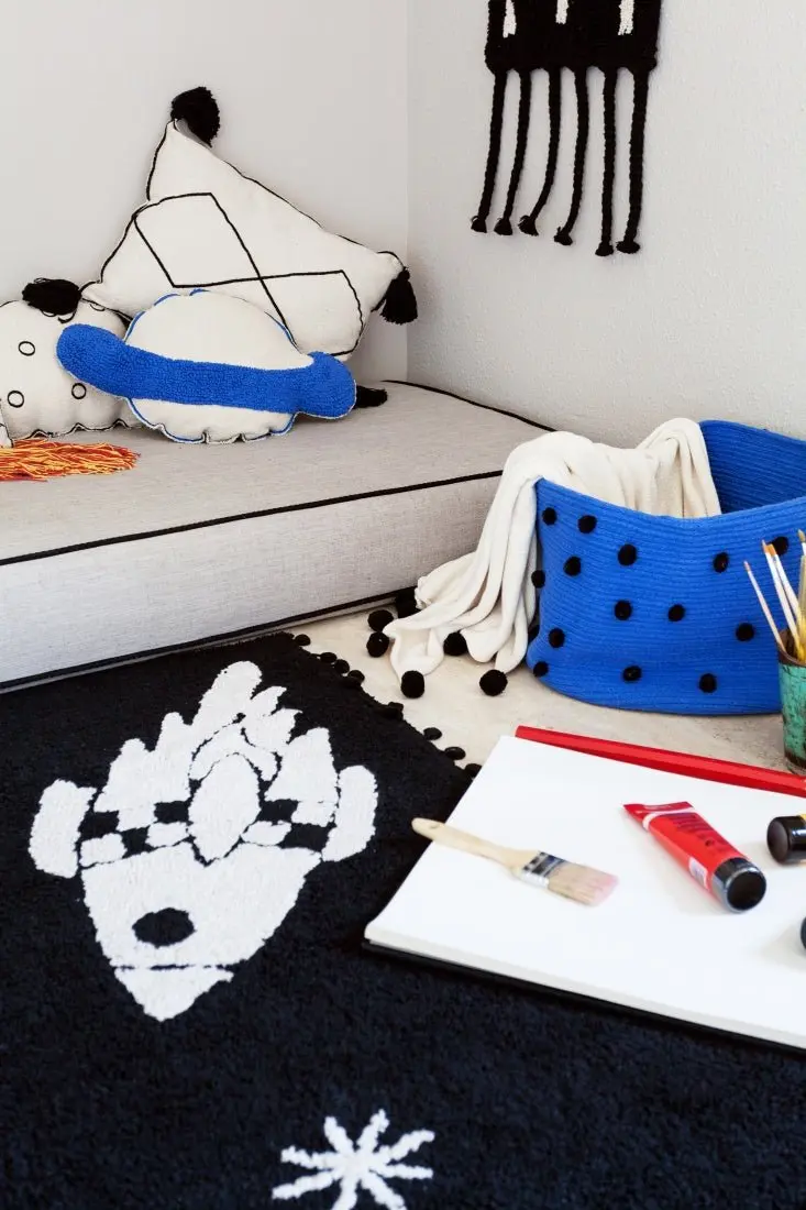 - Préparez-vous à décoller avec ce tapis univers graphique monochrome de Lorena Canals. Entièrement lavable, il représente une fusée, des planètes et des étoiles. Une pièce maîtresse dans une chambre à coucher à thème spatial.
